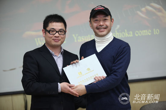 爵士乐学院宋军光院长为吉岗靖高先生颁发“北音客座教授”聘书