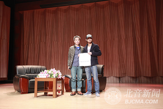 讲座别出心裁地采用了座谈的形式,我院音乐传媒学院王磊院长与刘卓辉老师展开对谈,在类似老友谈天的和谐氛围中,刘卓辉老师将他与Beyond交往的细节和记忆,《大地》、《情人》等脍炙人口的经典歌曲诞生的过程,以及初到大陆创办“大地公司”与内地音乐人合作的趣事等人生经历娓娓道来,丰富的从业经验、传奇的人生经历使现场观众听得入迷。同时,身为驰骋华语乐坛30年的著名填词人,刘卓辉老师也与学习创作的同学们分享了他创作心得,他讲到,填词并不需要多么华丽的辞藻,填词人是叙述化的诗人,只要将日常生活中体悟到的点滴转化成文字,使听众产生共鸣,一首好的作品便也随之诞生了。讲座后半段刘卓辉老师与观众进行互动交流,以幽默机智的语言回答了观众提出的各种问题,现场气氛十分轻松融洽。讲座结束后,我院马铁英副院长向刘卓辉老师颁发了北音客座教授聘书。