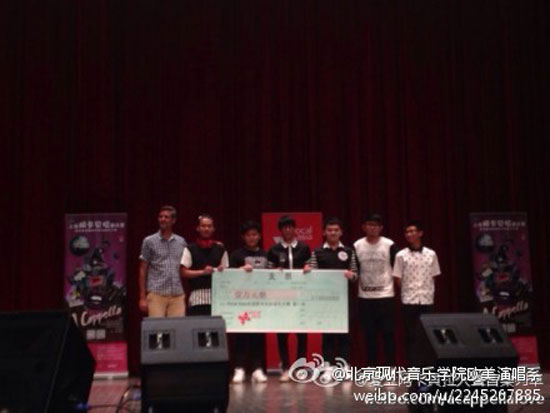 近日记者获悉,在7月下旬上海闸北海上文化中心举办的“2014上海阿卡贝拉音乐营暨第四届全国阿卡贝拉音乐大赛”上,北京现代音乐研修学院流行演唱学院欧美流行演唱系学生组成的新声驾到无伴奏人声乐团和唱唱反调人声乐团,凭借无可厚非的实力、潜质和完美的舞台表现力,击败了来自全国高校的其余10支乐团,分别摘得此次赛事冠军、季军。