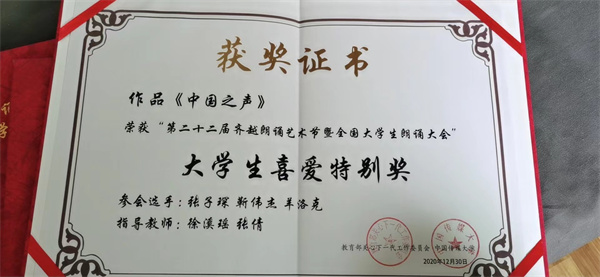 《中国之声》荣获“大学生喜爱特别奖”(第22届齐越朗诵艺术节)