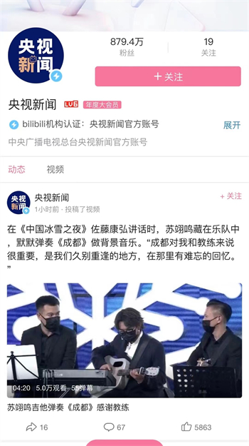 苏翊鸣的日本教练佐藤康弘通过网络连线的方式获得“友谊”荣誉,在佐藤教练发言时,苏翊鸣“藏”在乐队中吉他弹奏了一首《成都》做背景音乐,为教练制造惊喜。