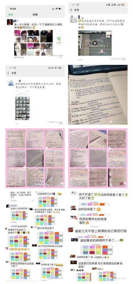 同学们参与线上学习的积极性普遍很高。老师通过播放视频、提问互动以及PPT演示,让同学们很容易吸收课程内容。在实操方面,老师在线指导学生的舞蹈动作和声音,能让大家相互学习取长补短。同时网课视频录屏回放,则让学生们能在课后更好地回课和消化吸收。也有很多同学认为,线上直播课堂能让自己更加专注学习,学生不仅可以通过发消息的形式与老师进行及时互动,得到老师的解答,还可以在线查阅资料、查收文件,很多同学非常喜欢这种网上授课方式。更重要的是,在疫情期间不能回到想念已久的学校的特殊日子里,网络课程的到来,让学生们不用再担心松懈了专业,重拾了学习的快乐与充实。