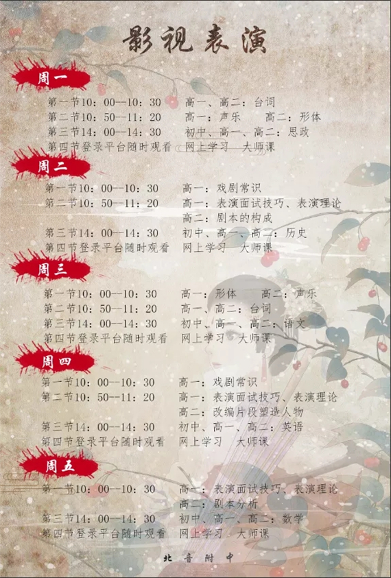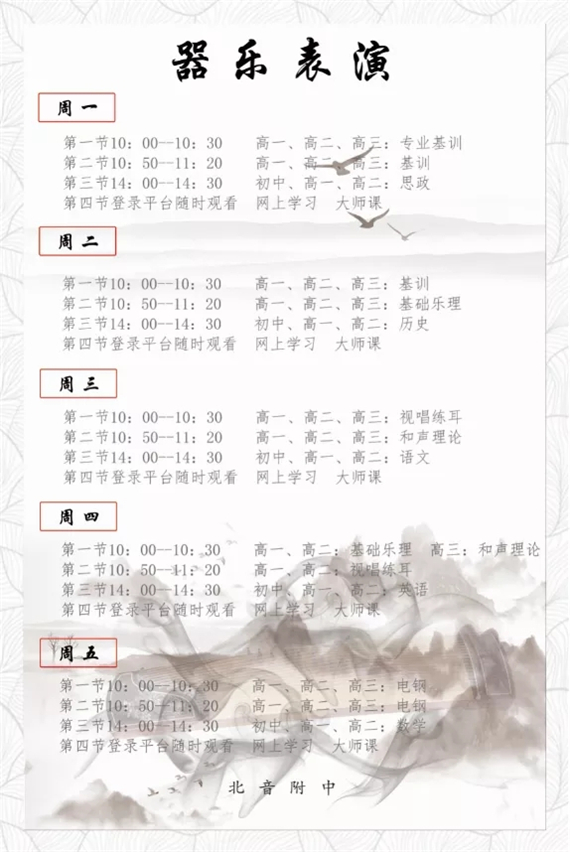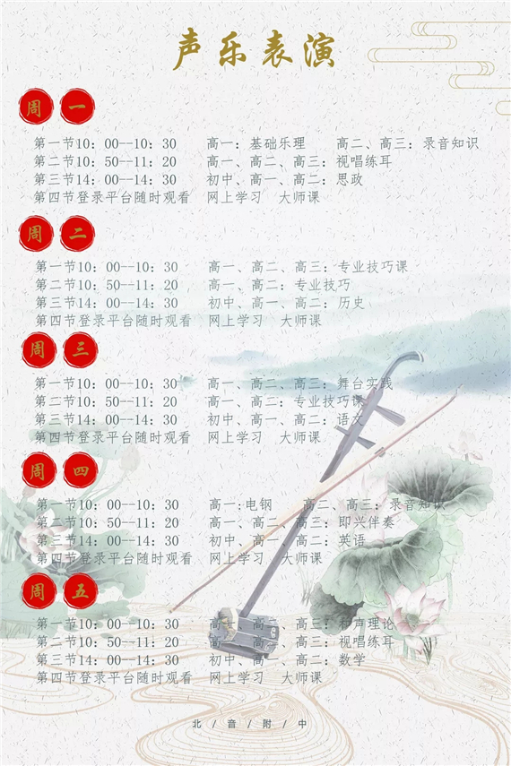 北音附中(北京市现代音乐学校)课表