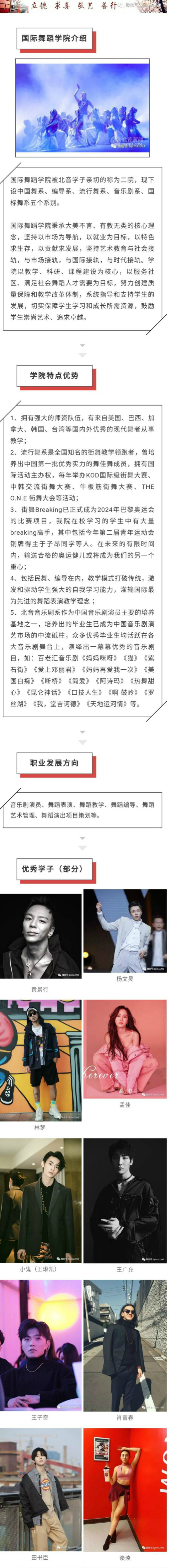 这里诞生过中国的街舞王子等众多后起之秀,这里集结了韩国、美国、法国等一批具有丰富教学经验的著名舞蹈教师组成学院的核心教学团队,这里聘请了一大批活跃在一线的知名舞蹈家甚至是街舞、爵士舞鼻祖型专家来校为学生开设大师课等课程,这里让你醉心探索舞之灵魂所在,圆你一个舞蹈的梦。这里就是北京现代音乐研修学院国际舞蹈学院。