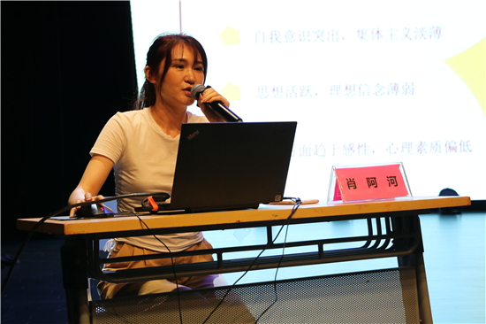 在学生个体发展方面,学生处心理咨询肖阿河·阿格占别克老师以“从心出发,呵护成长”为题,通过详实案例深入剖析当代大学生常见心理问题,艺术生们风光背后的困惑及集体主义和个人主义相冲突时学生内心的矛盾,指出辅导员应具备聆听和分享忧愁的能力,理解并整合学生的需求,善待每一种差异。