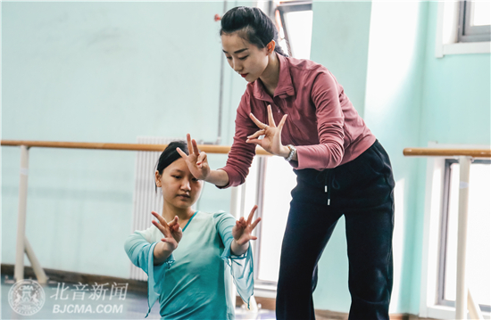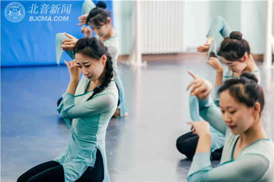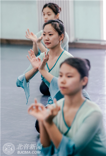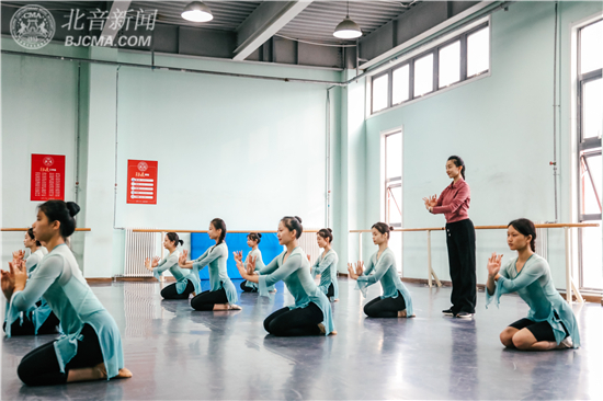 课堂上,张海伦老师通过系列训练,让学生找到具有中国古典舞审美观念的“韵”,强调其神其韵的生发所带动的身动形变,而并非以学生动作形态的“整齐划一”为最终目的,希望学生能够领悟到:没有神的形,没有韵的动,会模糊中国古典舞的审美观念。