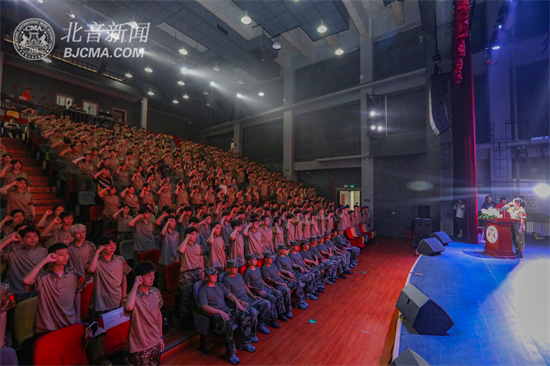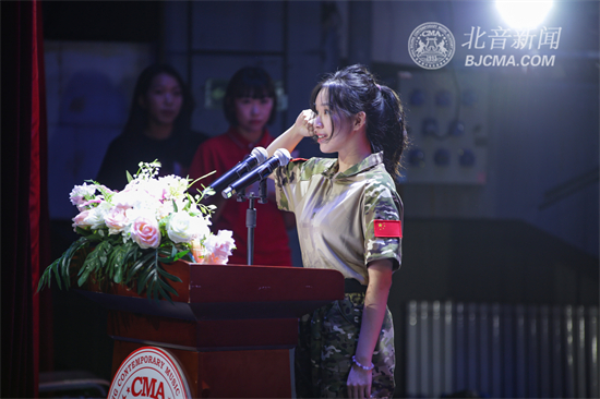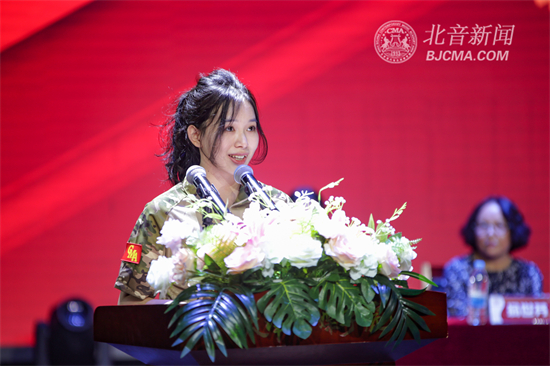 流行演唱学院新生许瑜泓代表新生发言,从踏入北音校园的那一刻开始,她便感受到北音的温暖与热情,她也因此逐渐消除了面对新环境的不适,迅速开始融入集体生活。许瑜泓代表全体新生承诺:作为北音的新生一代,他们必将齐心协力、不辱使命,以立德、求真、敬艺、善行为准则,圆满完成拓展训练任务。“自立自强,不负时代,不负年华,为北音添彩!”全体新生的庄严宣誓响彻现场。