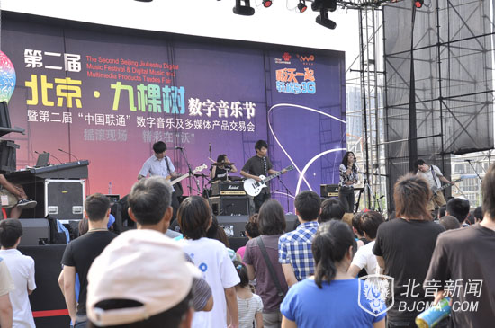 6月10日,随着“第二届北京·九棵树数字音乐节暨第二届‘中国联通’数字音乐及多媒体产品交易会”开幕式的圆满落幕,上午11:00,瘦人乐队、左右乐队、丝绒公路乐队等以北音学子为主力的十五支中国先锋摇滚乐队齐聚北京现代音乐学院南广场为观众呈现一场精彩绝伦的摇滚盛宴!十五支乐队各有专长,现场高潮迭起,尖叫连连,掀起夏日激情狂潮。演出将持续到晚上9:00,更多精彩请关注后续报道。