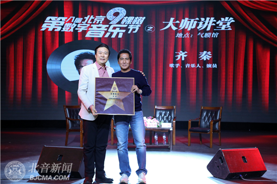 在同学们热烈的欢呼声中,李罡院长现场为齐秦老师颁发了北音“名誉院长”荣誉证书。大师课随后正式开启。