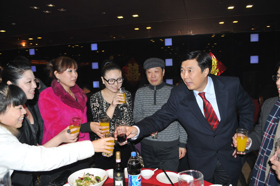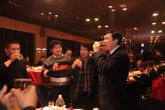 在常务副院长张震宣布北京现代音乐学院建院十五周年校庆晚宴开始后,李罡院长举杯向来宾致祝酒辞,全体来宾举杯起立,共同饮下北音建院十五周年的庆功酒!随后,李罡院长偕同常务副院长张震及李平副院长亲自到各桌向每位来宾敬酒。李罡院长与大家亲切畅谈往事,不时谈到刚建院时条件的艰苦和各方面艰辛,说到动情之处热泪盈眶,令在场嘉宾无不动容!而在谈到北音经过十五年的艰苦拼搏而取得的现在骄人业绩及对未来的展望时,李罡院长则满腔自豪,神采飞扬!大家无不为身为北音人而骄傲!