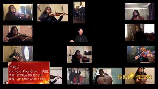 节目中,赖俊宏带来精彩绝伦的“功夫空竹”表演为晚会开场,随后,交响乐《迈向新的地平线》《Appalachian Sunrise 》《Dragon Dances》《Fligh》《茉莉花》、民乐演奏《我的祖国》等12首曲目精彩呈现,为全球观众献上一场新年音乐盛会。