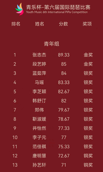 近日,“青乐杯”第六届国际琵琶大赛圆满落幕,北京现代音乐研修学院音乐教育学院器乐系学子张志杰、唐明慧分别斩获青年组金奖和铜奖。