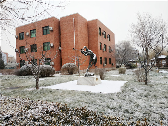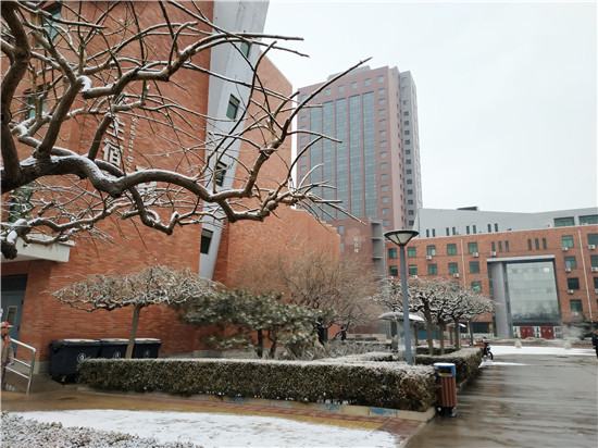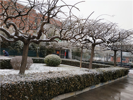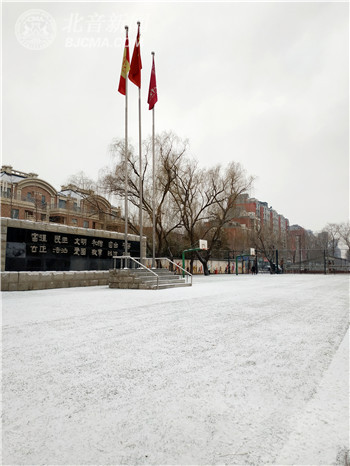 情人节春雪来袭 北京现代音乐研修学院校园雪景怡人