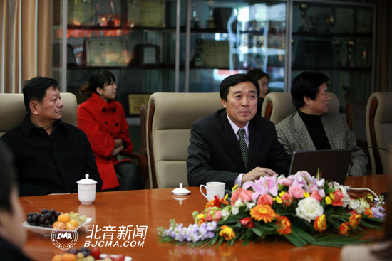 李罡院长简要介绍了北京现代音乐教育集团的综合情况和两院一校(北京现代音乐学院、天津体育学院运动与文化艺术学院、北京市现代音乐学校)的现状,同时表达了我院的合作意向。会谈中,王中军表示早就了解我院办学的宏大规模、一流的教学设施和高质的综合人才,我院很多毕业生都在华谊任要职,为华谊的发展做出了突出贡献。王中军还提到,上海、天津的几所学院都曾希望和华谊兄弟有所合作,他们的规模很大,但与华谊和发展规划不符合,此次来到北音更加了解了我院的教学理念和办学规划,接近华谊的概念和发展方向。王中军还初步表达了合作意向,并表示北音与华谊合作可谓是珠联璧合。