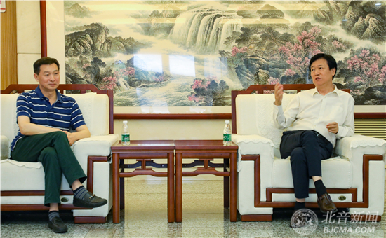 中国录音师协会理事长王宝民(左)北音执行院长李平(右)会谈