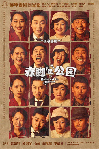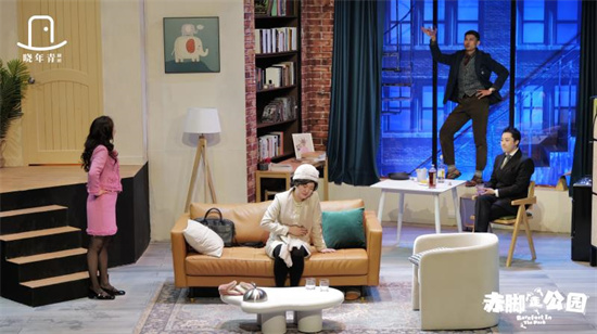 话剧《赤脚走公园》改编自好莱坞1967年的幽默电影《新婚燕尔》,是美国剧作家尼尔·西蒙创作的浪漫喜剧,在百老汇首映之后,已经上演了超过1500场。它讲述的是一对新婚夫妇的故事,他们住在纽约市褐砂石顶楼的公寓里,新娘的性格活泼自由,希望过充满激情的浪漫生活;新郎则循规蹈矩、认真严肃,把全部注意力都放在自己的律师事业上,还不停地担心公寓的各种缺陷:漏水的壁橱、天窗上的洞——故事便围绕着两人搬进新家后的生活展开。