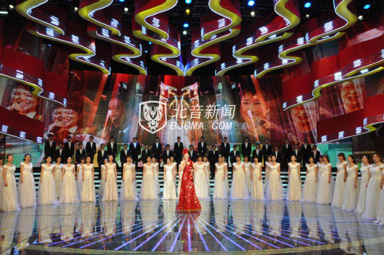 合唱团成员与宋祖英共同演绎经典歌曲《大地飞歌》