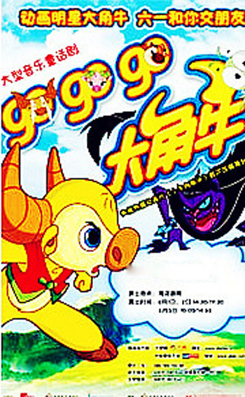 大型儿童音乐剧《GO GO GO 大角牛》是根据央视曾一度创下同期节目收视率新高的国产动画大片《小牛向前冲》改编而成,主要讲述了一群生活在牛大都的牛儿们的励志故事,该剧制作精良、形象生动、故事曲折、情节有趣,是近年来少有的儿童励志音乐剧。