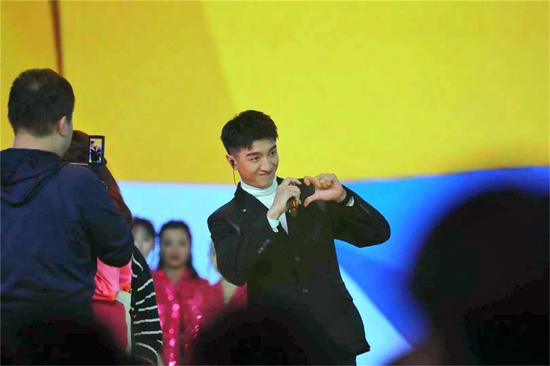 金翰、关晓彤和北音舞团的同学们在演出排练现场