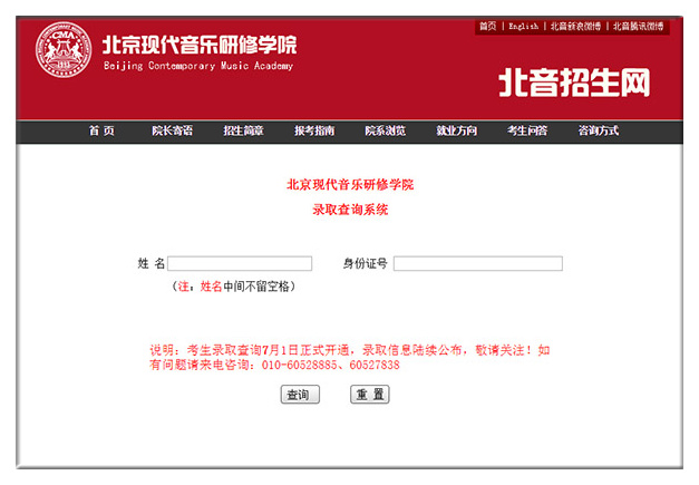 八 、我院考生录取查询已于7月1日正式开通,录取信息陆续公布,可登录http://luqu.bjcma.com/查询!如有问题请来电咨询:010-60528885、60527838。