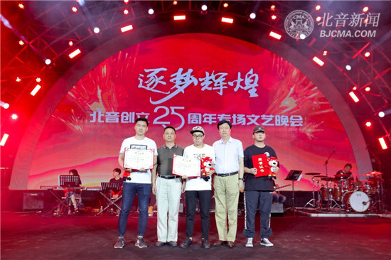 5月25日晚,“逐梦辉煌”北京现代音乐研修学院创立25周年专场文艺晚会现场,“我爱北音”校园歌曲征集活动奖项揭晓,经过反复评议,评审委员会从参选的上百首作品中最终评审出了10首获奖作品,其中徐怀超作词、闫泽欢作曲、丁培峰编曲的《晚安 北音》荣获一等奖。