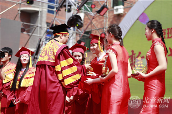5月25日上午,“新时代 新梦想 新征程”北京现代音乐研修学院2018届毕业典礼上,学院对在专业领域有突出表现的往届毕业生们进行了表彰,并为其颁发“金穗奖”荣誉证书和水晶奖杯。奔忙于各大片场的“清纯校花” 汪诺乔,得知获得了“金穗奖”,也推掉了工作赶到学校接受了表彰。